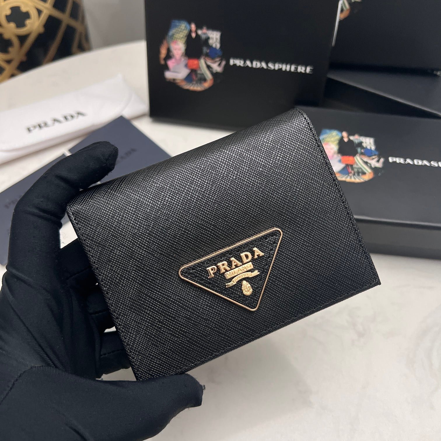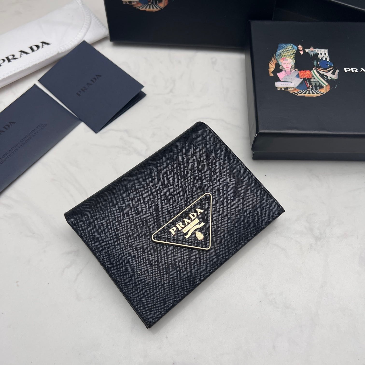 Perfect Match: Prada Saffiano Leather Double Black 25Cm X Prada Small Saffiano Leather Wallet Black 10cm