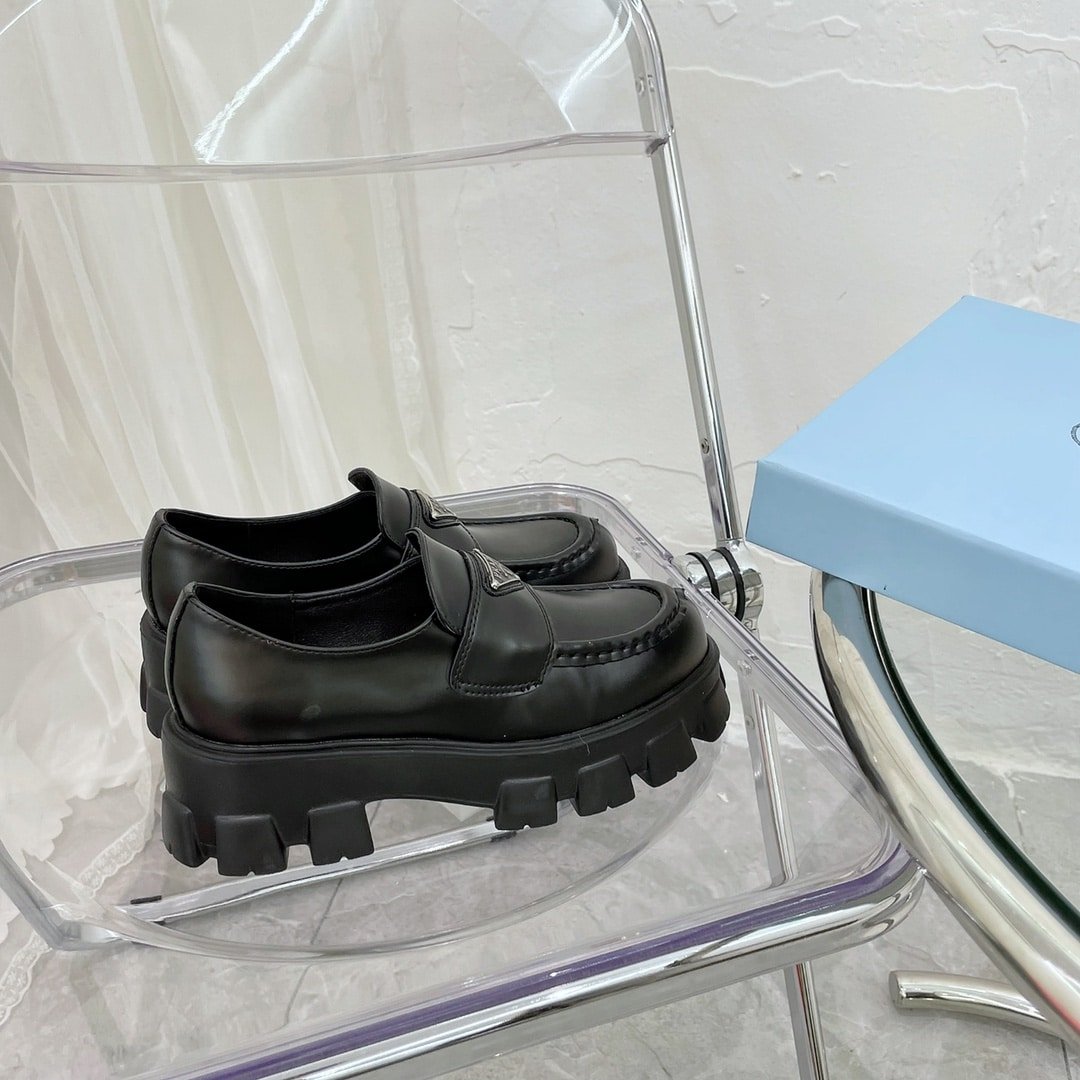 Replica 1:1 – Prada Monolith Brushed Leather Loafers In Black 2DE129B4LF0002