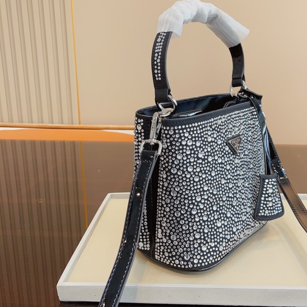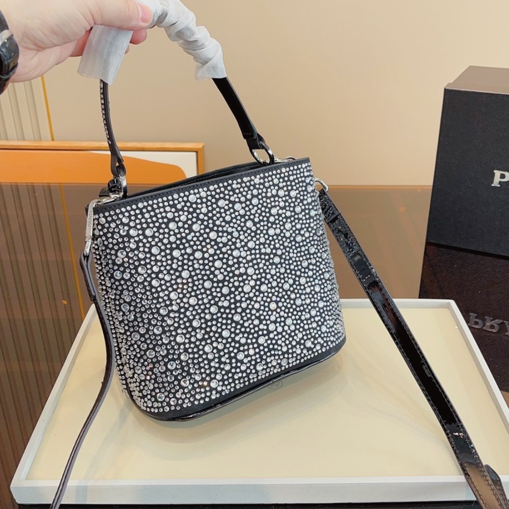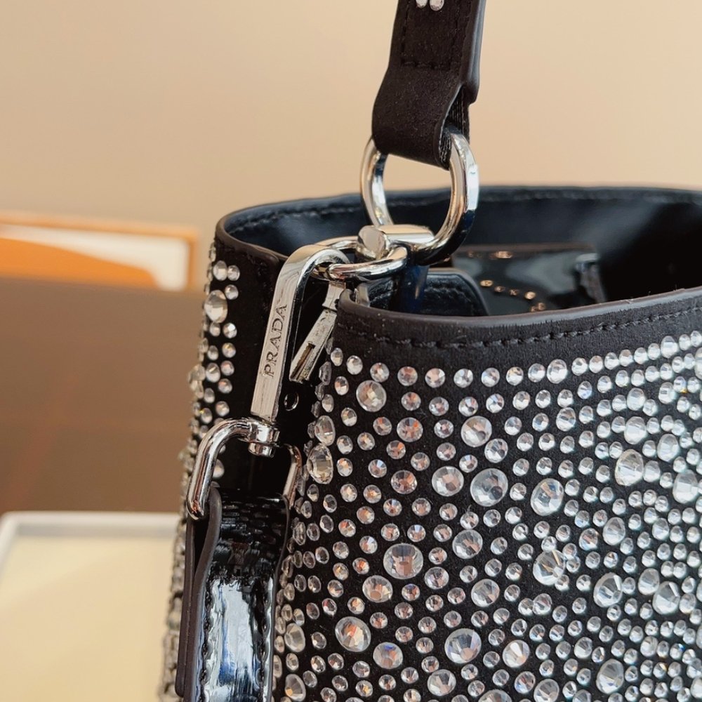 Replica 1:1 – Prada Panier Satin Bag With Crystals 18Cm