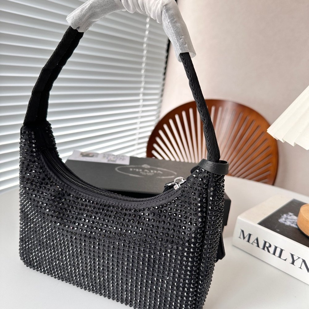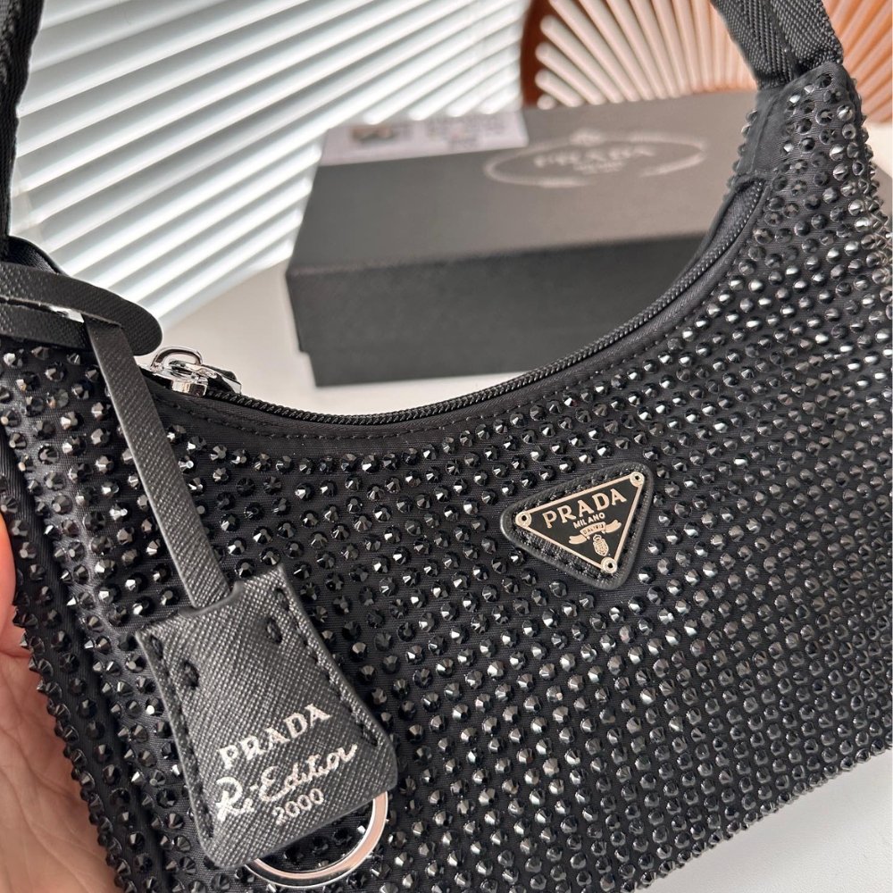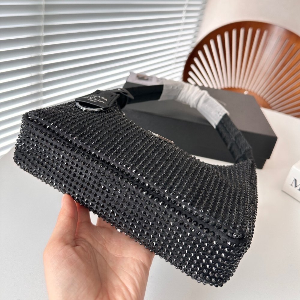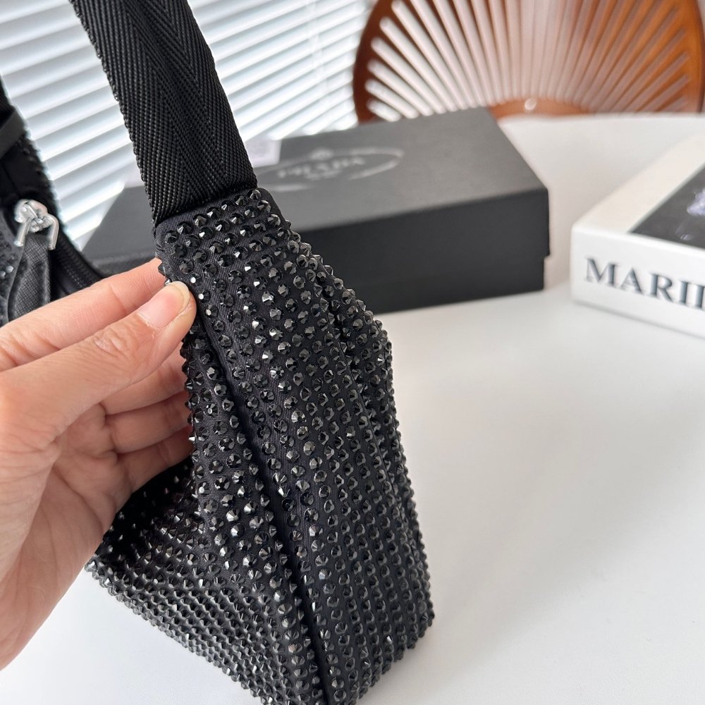 Replica 1:1 – Prada Satin With Crystals Black 21Cm