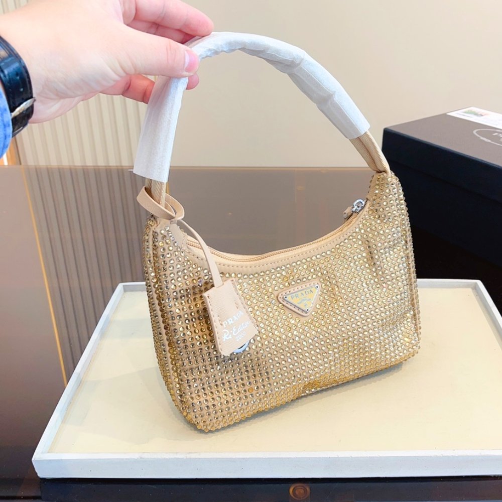 Replica 1:1 – Prada Satin With Crystals Platinum 21Cm