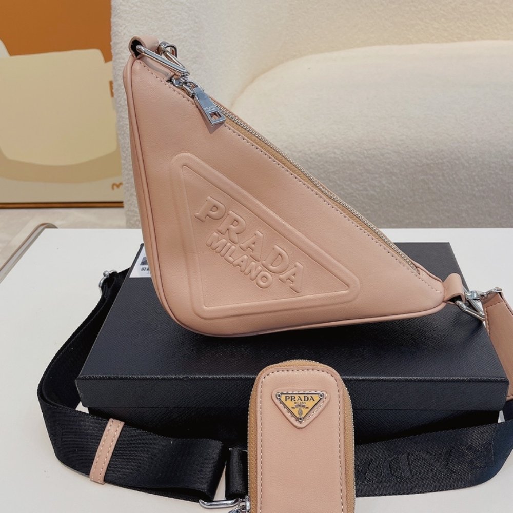 Prada Triangle Leather Shoulder Bag Sand Beige 27cm