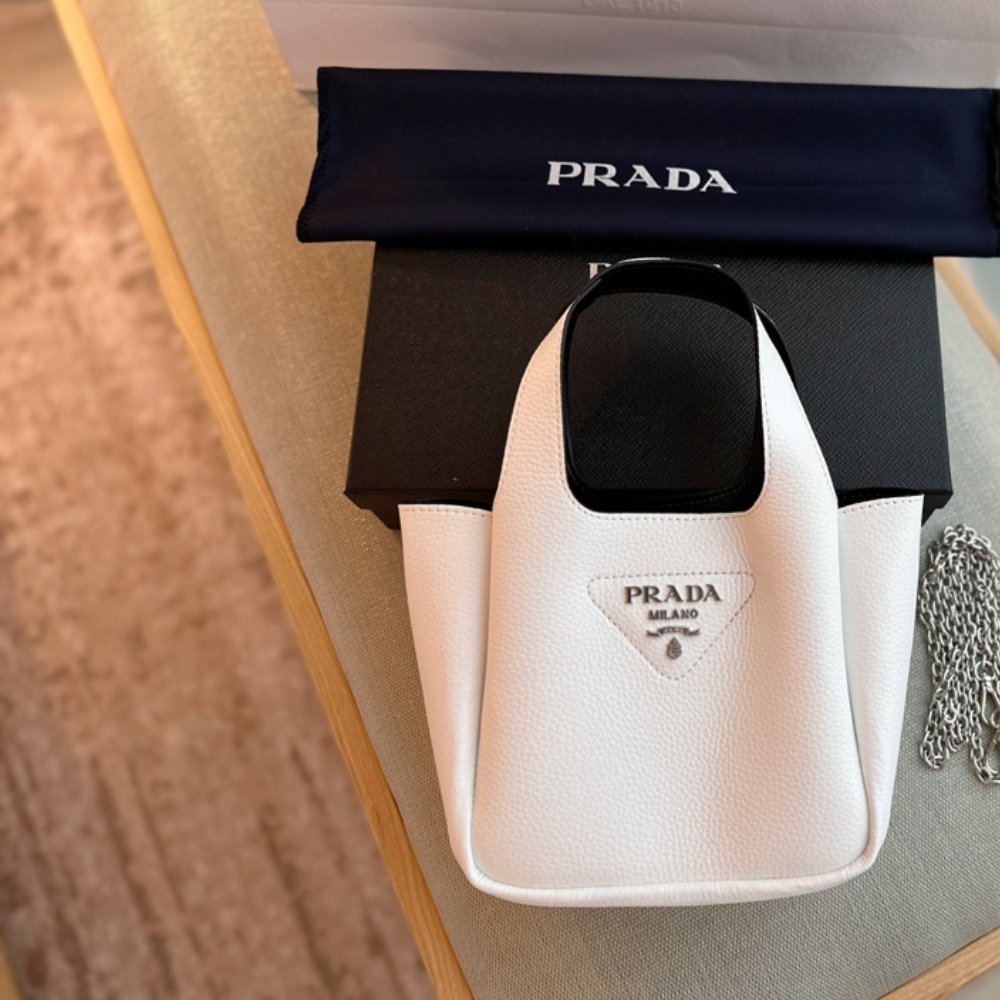 Prada Vittelo Daino Mini Tote Bag White 18Cm
