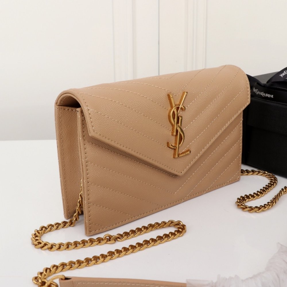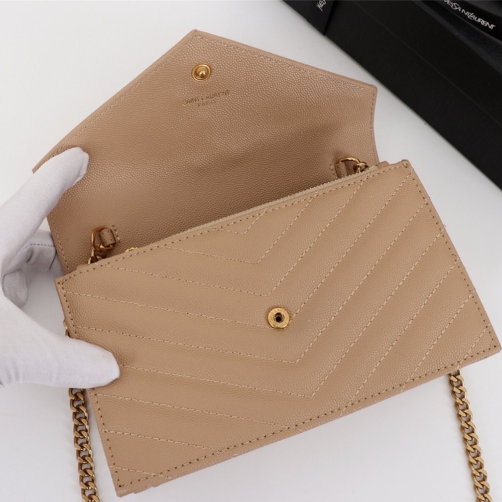 Replica 1:1 – Saint Laurent Cassandre Envelope Chain Wallet Dark Beige 20cm