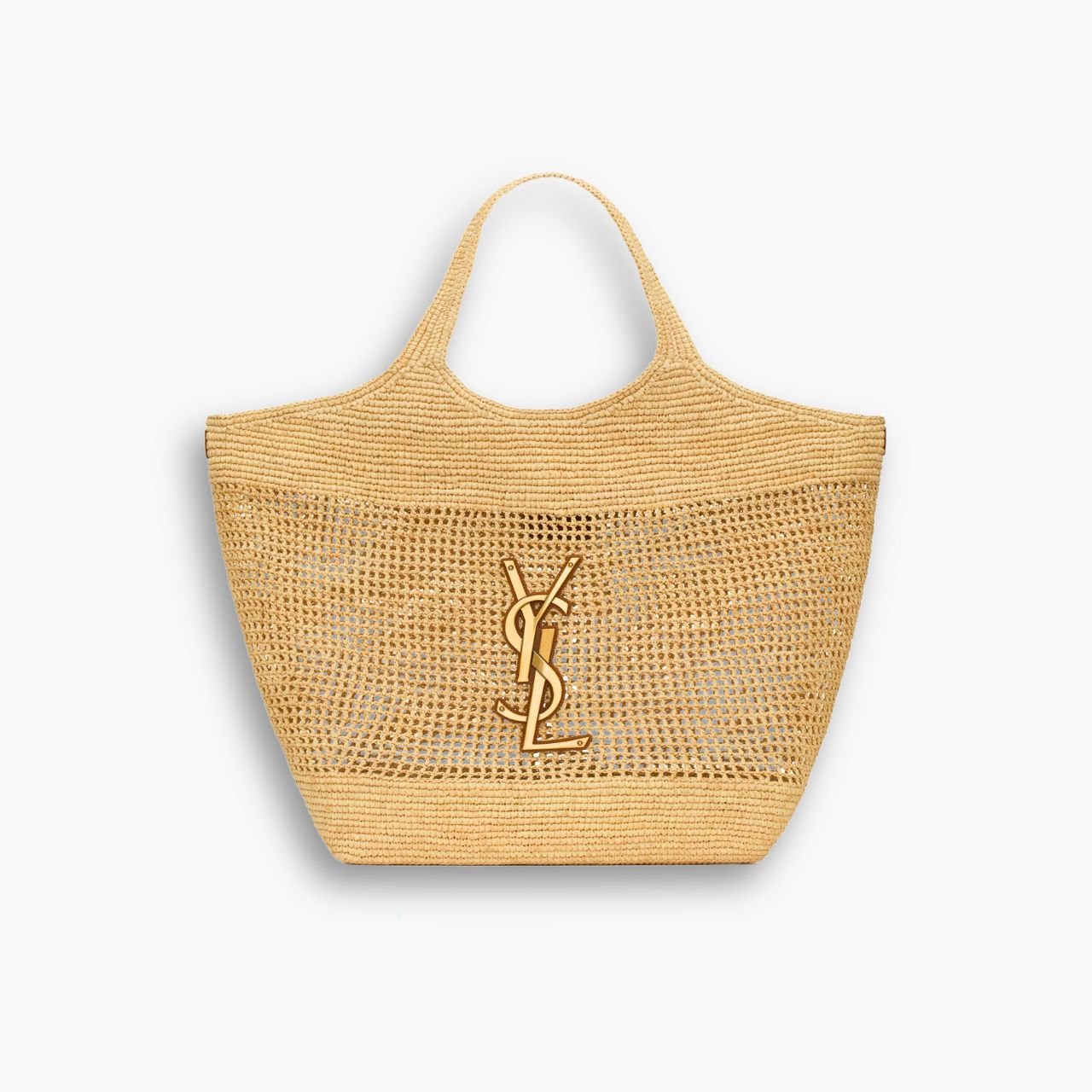 Saint Laurent Icare In Raffia Naturel And Brown Gold 36cm