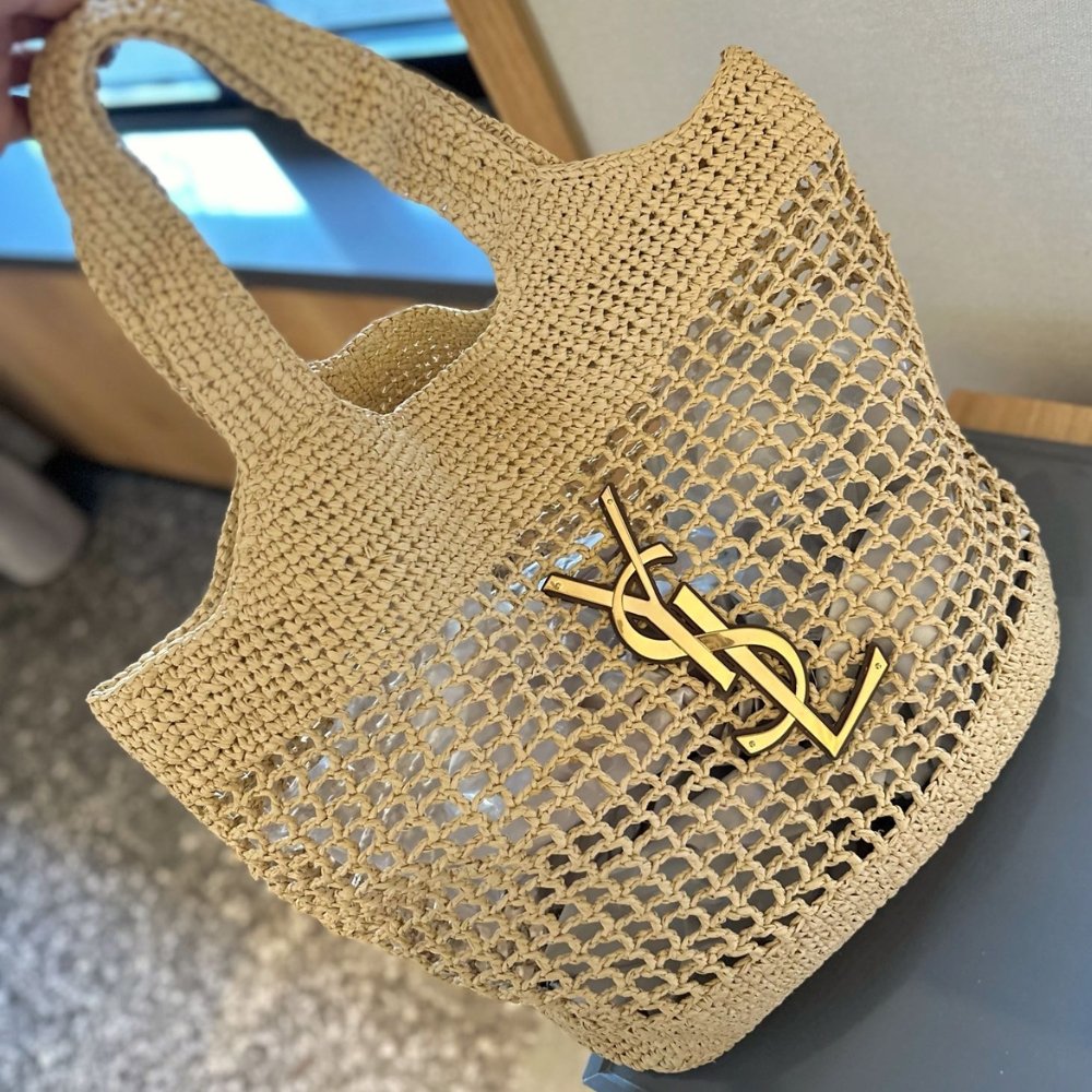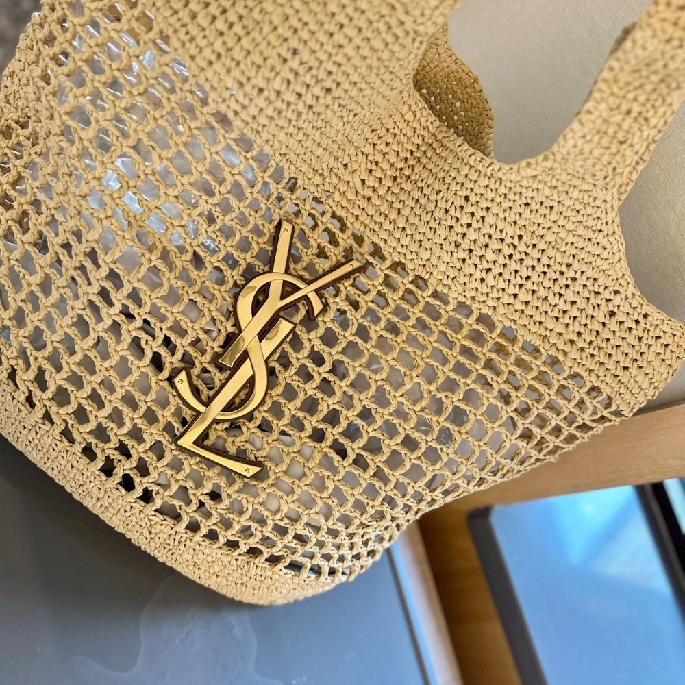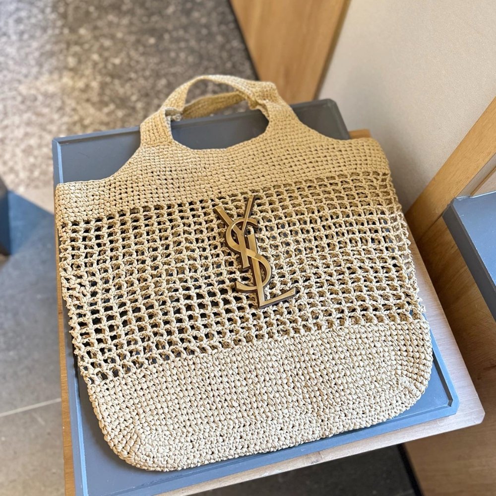 Replica 1:1 – Saint Laurent Icare In Raffia Naturel And Brown Gold 36cm
