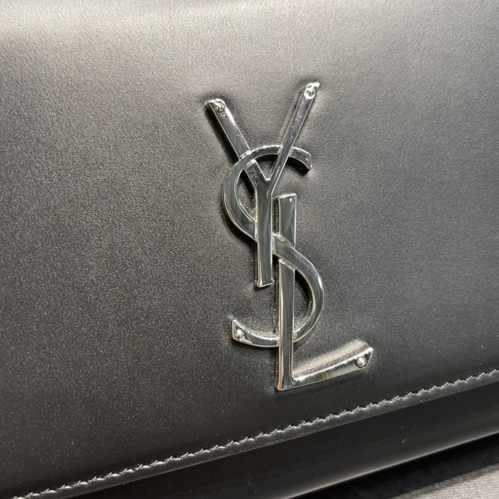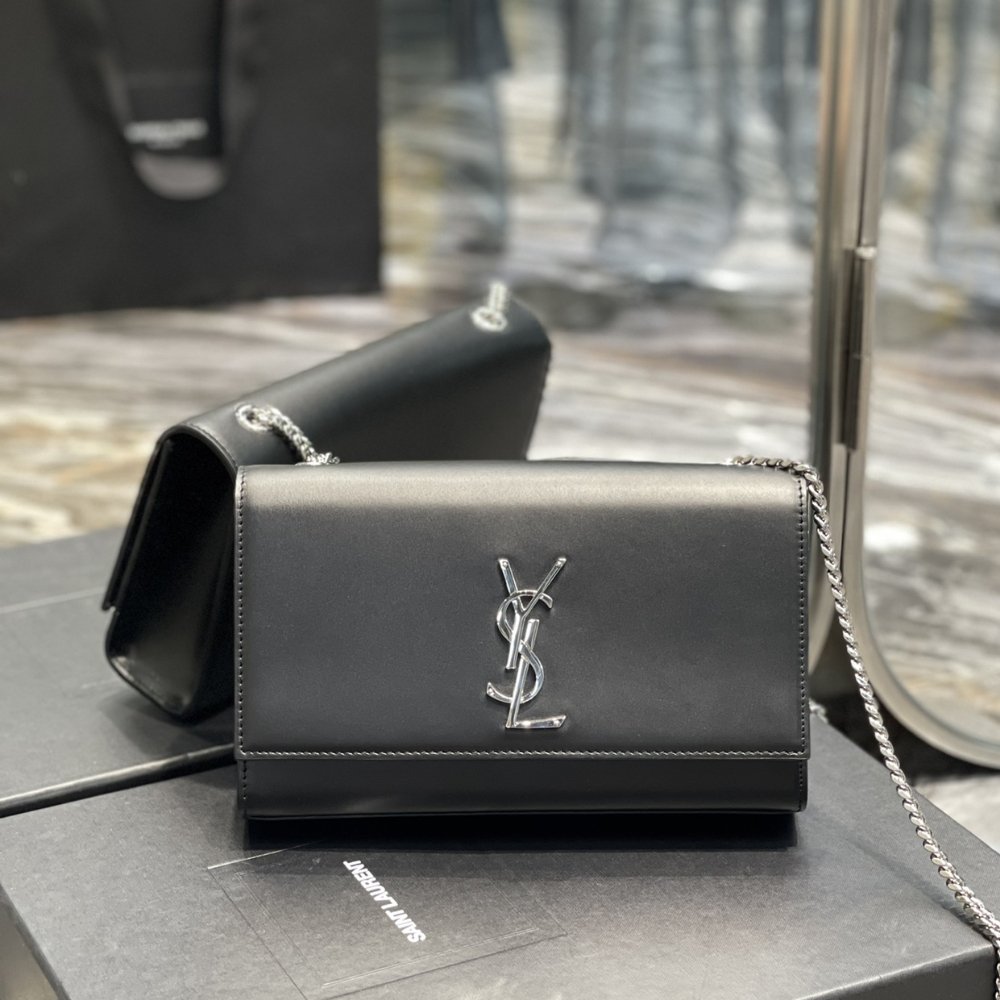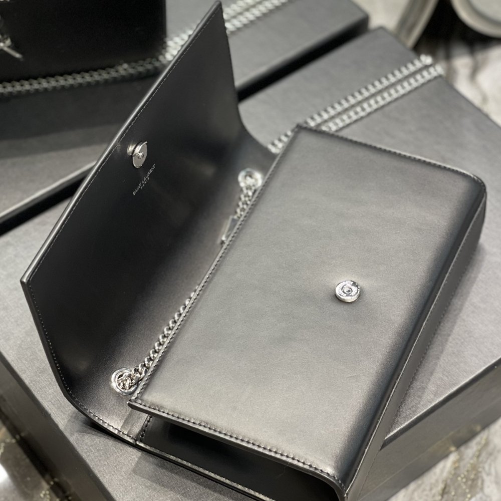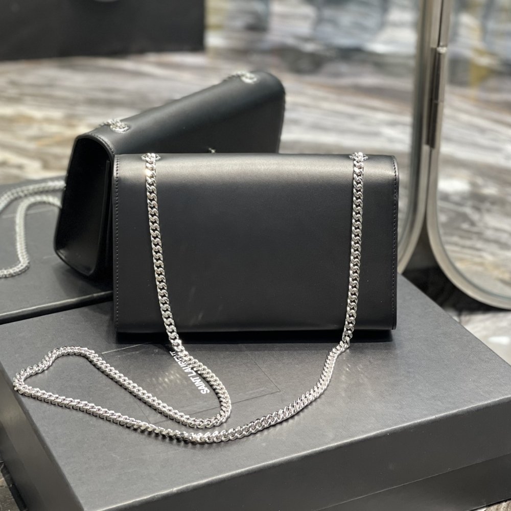 Saint Laurent Kate Medium In Grain De Poudre Mirror Effect Black 24cm