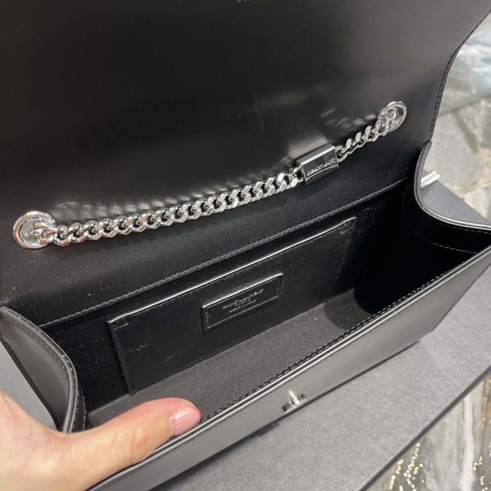 Replica 1:1 – Saint Laurent Kate Medium In Grain De Poudre Mirror Effect Black 24cm