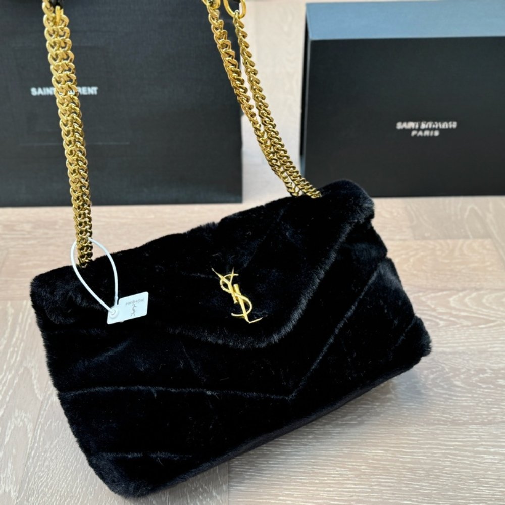 Saint Laurent Loulou Shearling Puffer Bag Black 28cm