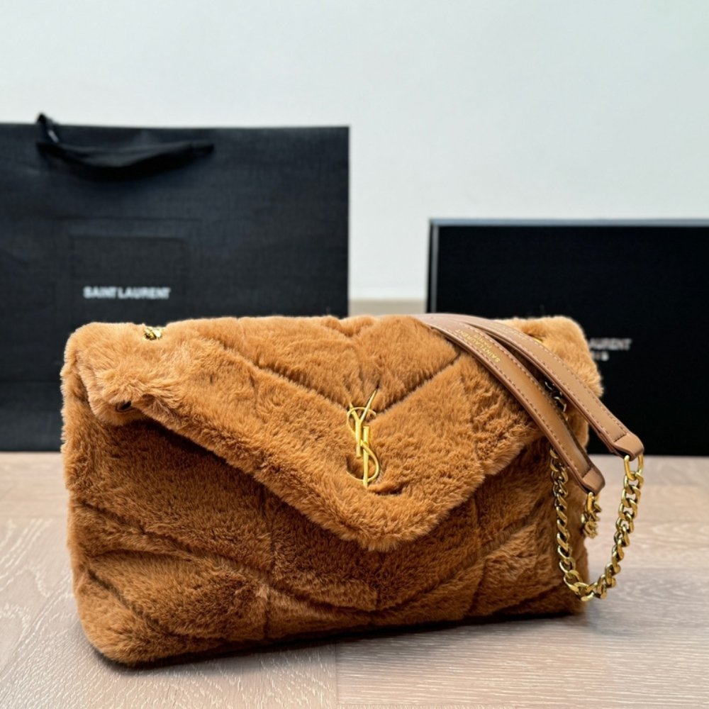Replica 1:1 – Saint Laurent Loulou Shearling Puffer Bag Brown 28cm P00589743