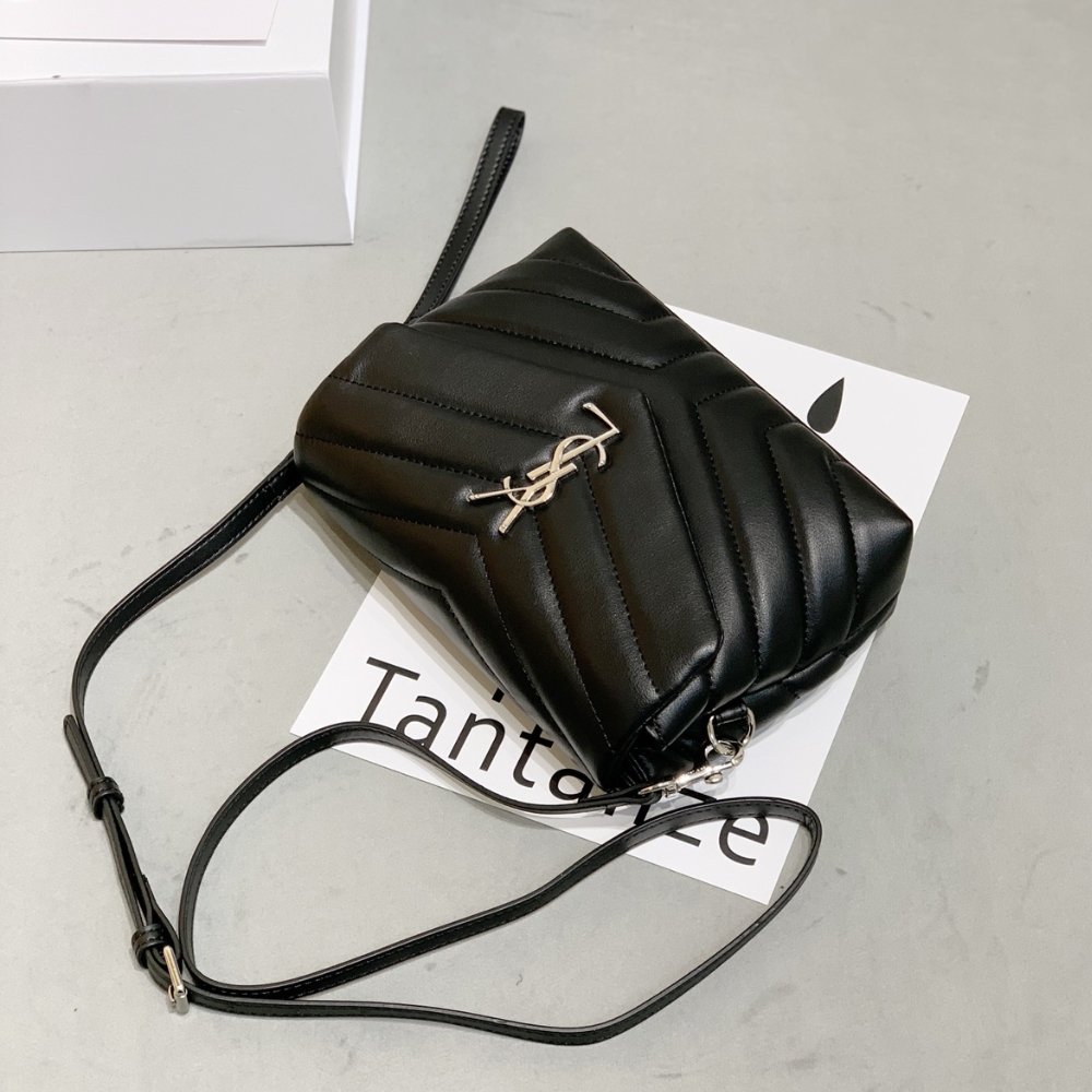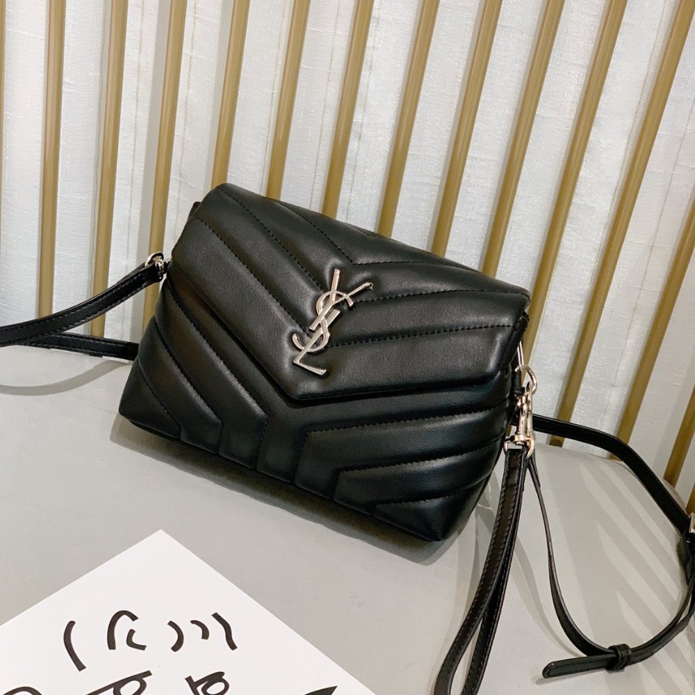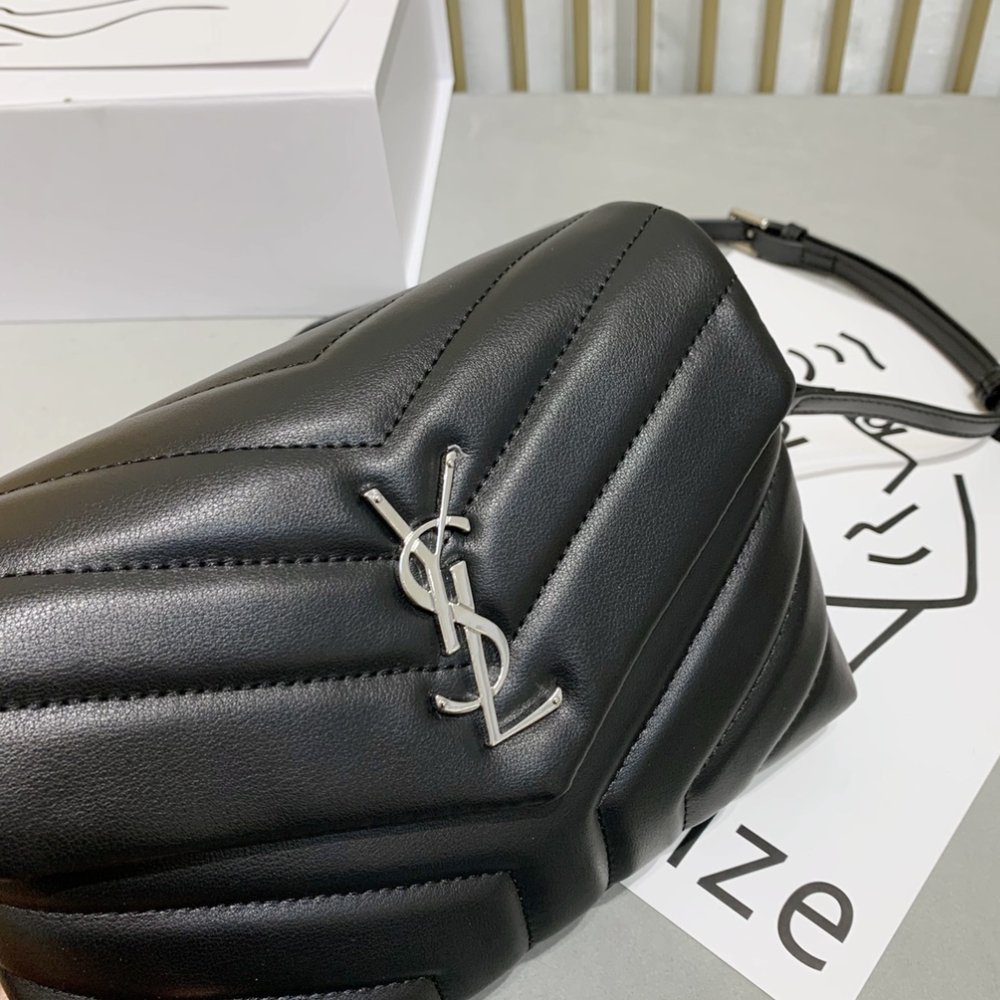 The Saint Laurent Loulou Small 20cm bag is an iconic piece crafted from luxurious black quilted leather, exuding elegance. It features the signature YSL logo in silver-tone hardware, showcasing the brand’s timeless style. Its compact size makes it perfect for a chic and modern look.
