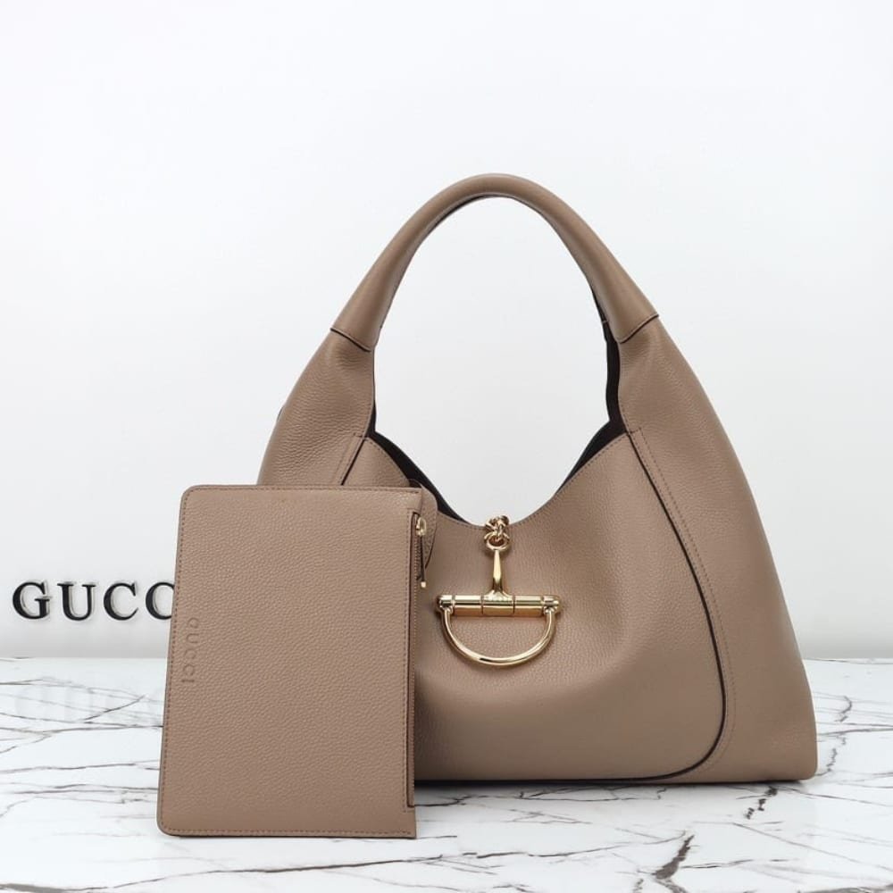 The new Gucci Softbit shoulder bag reimagines the House’s signature hardware as an oversized half Horsebit. It is both aesthetic and functional as the magnetic closure of the relaxed silhouette, crafted from supple, grainy leather with a rich texture.