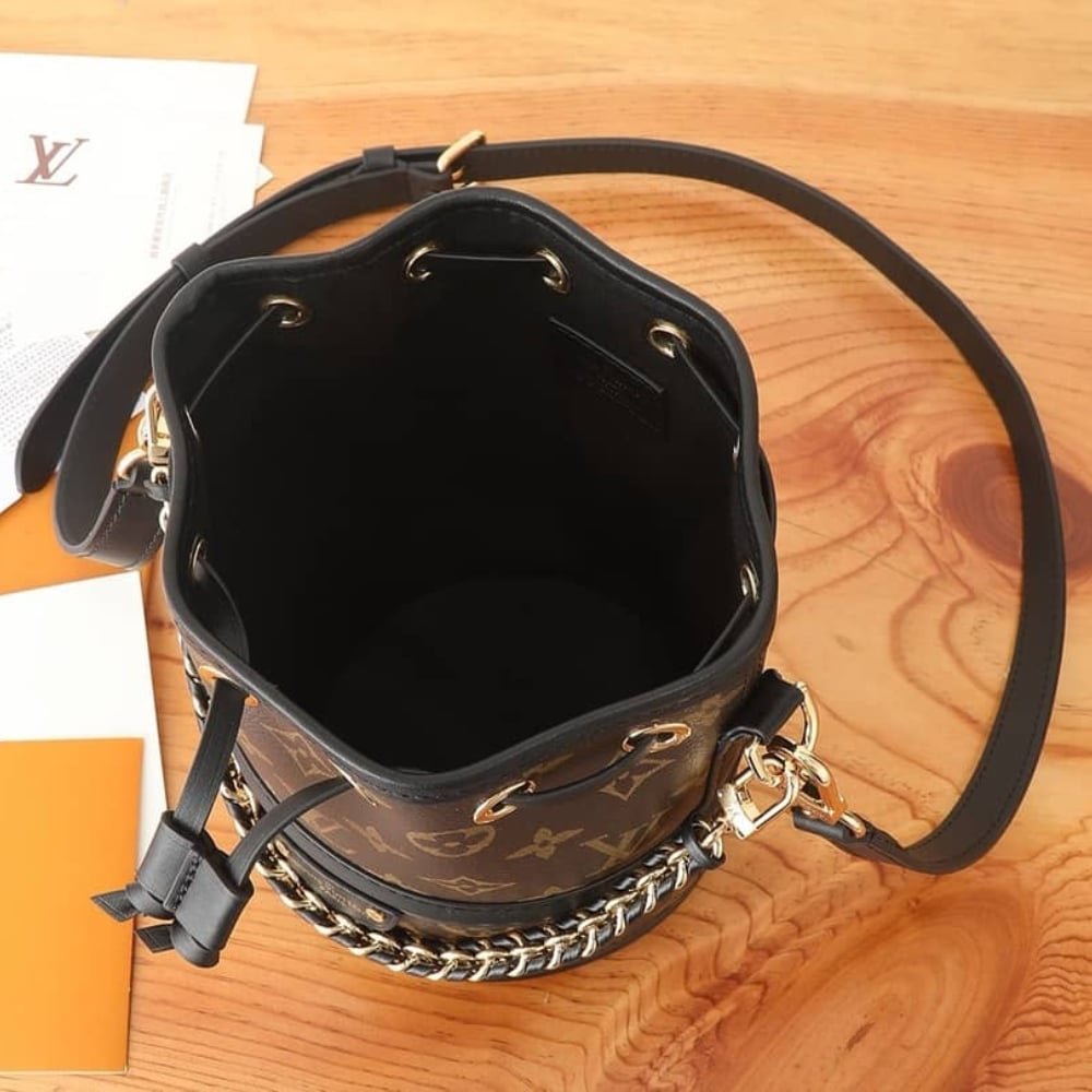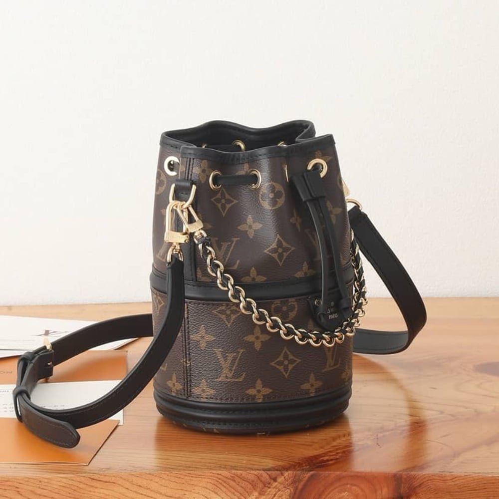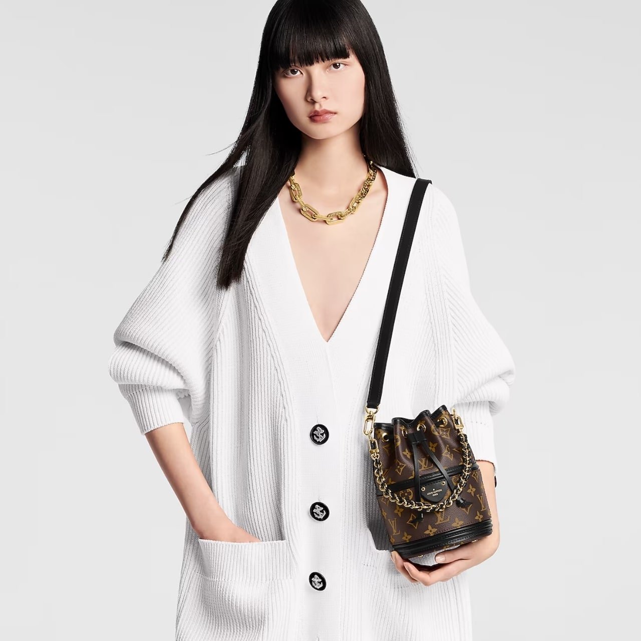 The Canoé bucket bag in Monogram canvas is a fusion of two iconic Louis Vuitton models: the historic Noé and the fashionable Cannes. With its small proportions, Cannes-inspired molded bottom, and Noé drawstring, it perfectly combines style with functionality.