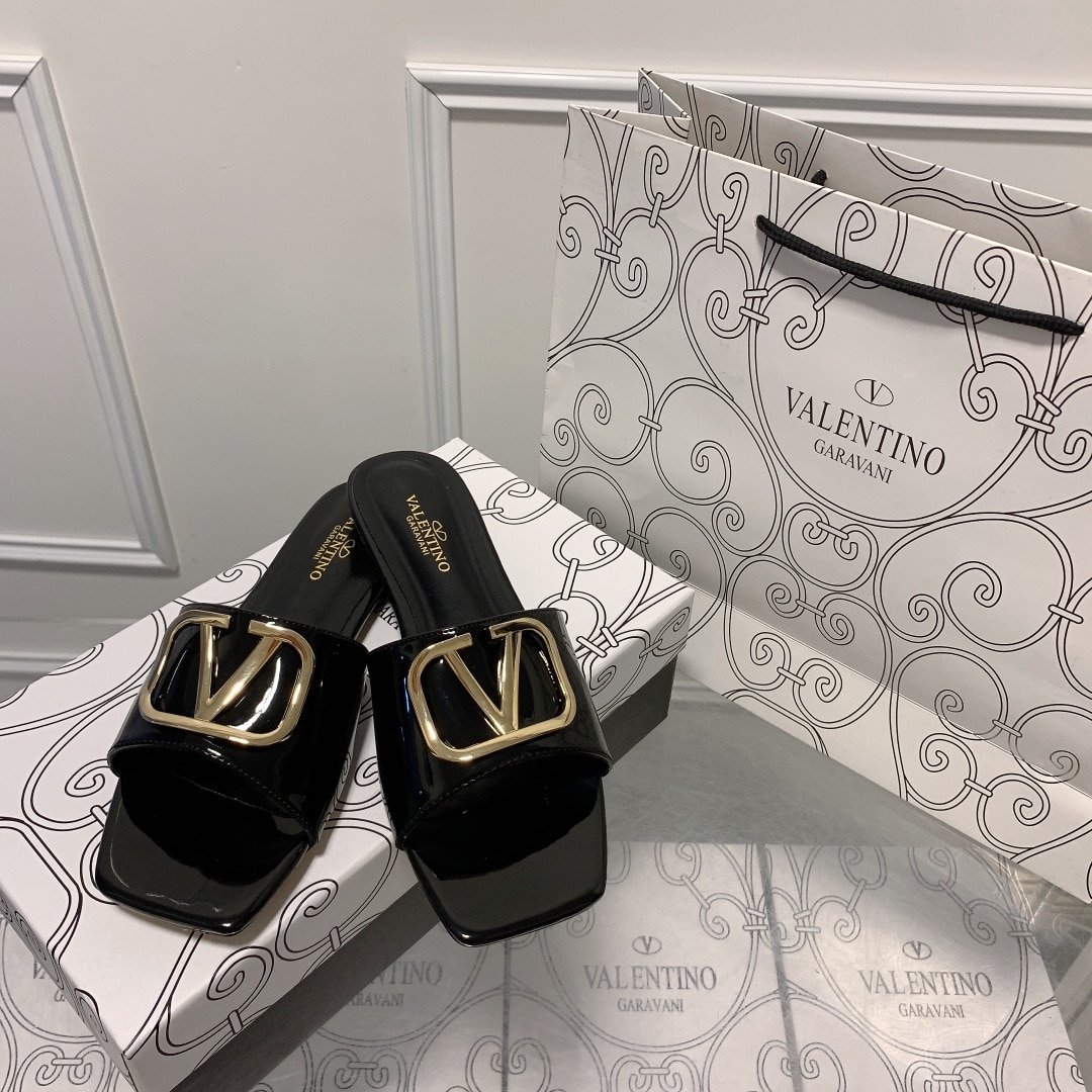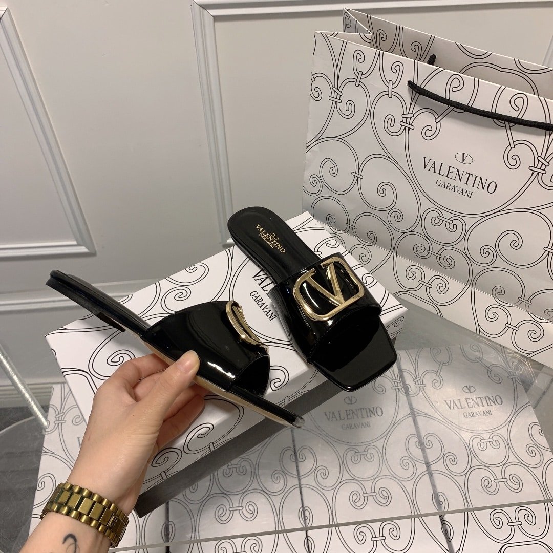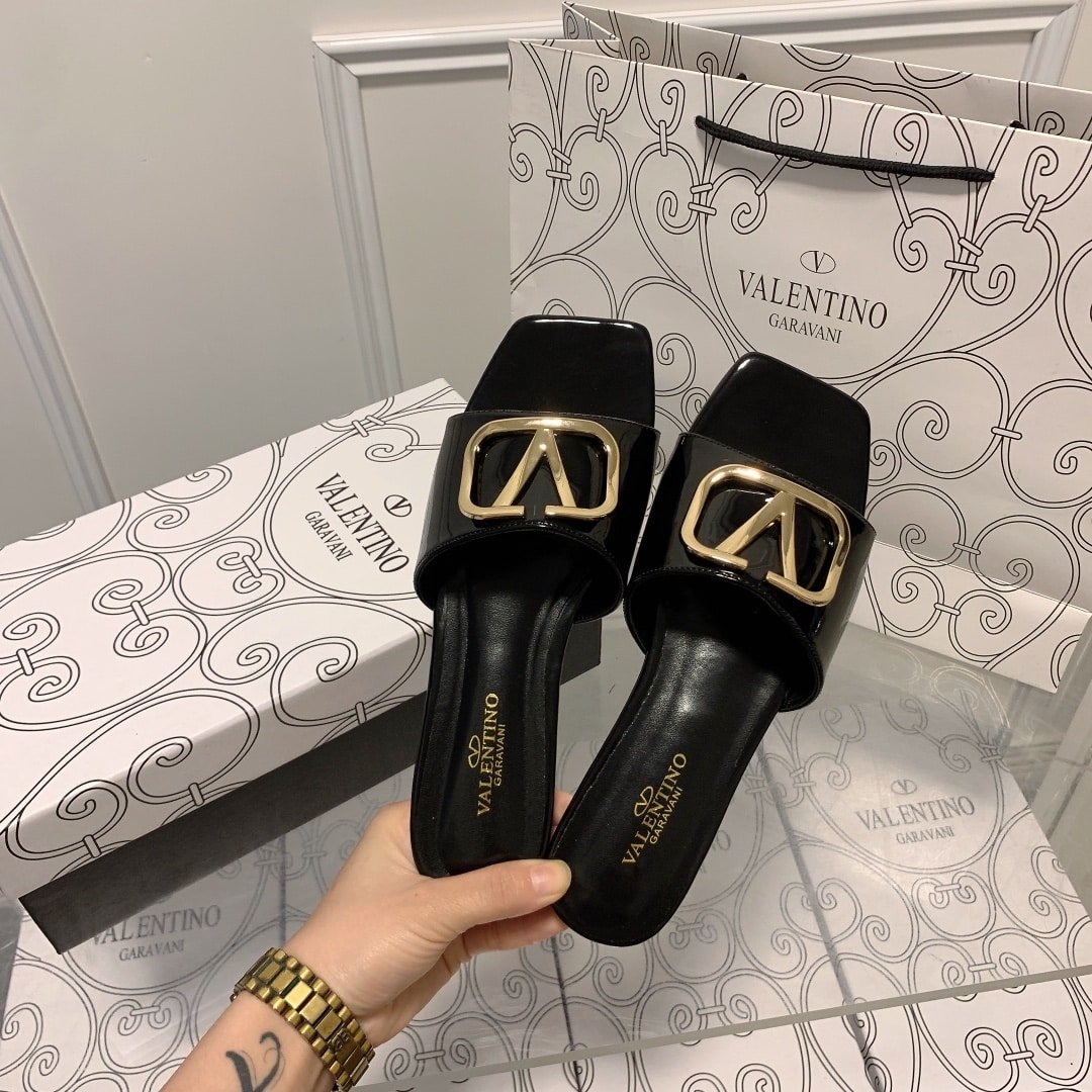 Replica 1:1 – Valentino Vlogo Square Toe Slide Black